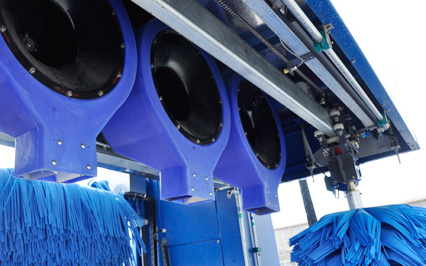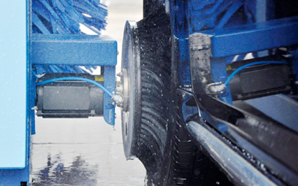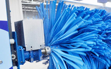 進(jìn)口意大利塑玻絲輪刷,根據(jù)光電開關(guān)感應(yīng)判斷車身位置,輪刷啟動至輪轂位置,開始清洗,正反旋轉(zhuǎn)刷洗輪轂,電腦洗車機(jī)全程電腦全自動控制輪刷伸縮。